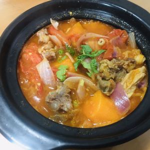 所有食材切好备用。牛腩先用高压锅焖熟,焖软,盛起来备用。