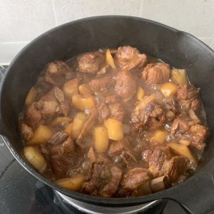 炖30分钟左右放入土豆,继续中小火闷炖。
