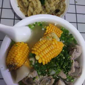 倒热水,加入洗净的排骨,加入大葱,加入姜片大火烧开小火炖45分钟左右,加盐加入切好的玉米在煮20分钟,最后加入白萝卜在煮10分钟,关火。