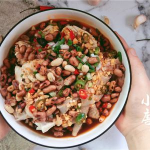 淋入提前调好的调料,最后撒上炒好的花生。这道椒香浓郁,鸡肉滑嫩多汁的口水鸡就做好了。