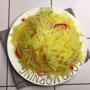 豆丝切好,过冷水去淀粉,换几次水,这样炒出的土豆丝才会口感脆,也不会黏糊糊的