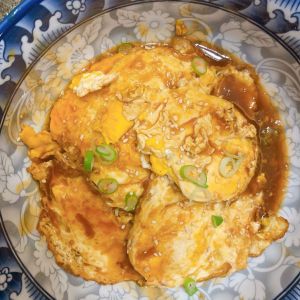 重点:荷包蛋煎好后。重新起个锅,把荷包蛋放入锅内,加入调好的蛋汁,小火熬到酱汁浓稠一点。