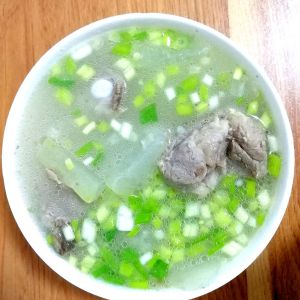 冷锅冷水放入排骨。煮开水把血水泡沫捞丢后加入冬瓜。