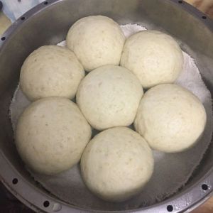 发酵好的面团加入适量干面粉,揉两百个回合(你看着办吧),排气后分成小挤子,小挤子揉成馒头往里揉,一个馒头揉个一两分钟后,调整一下形状就可以了。如图,盖上盖子二次发酵20~30分钟左右,冷水开始蒸,水开后中小火再蒸15分钟左右,关火五分钟后再开盖。