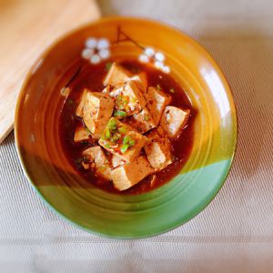 倒入开水,水量在豆腐下面的位置就可以,大火烧5分钟,再中小火慢慢煮一会