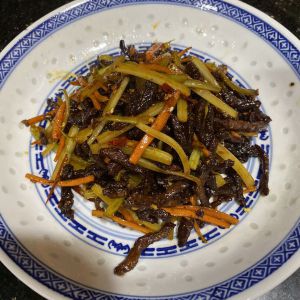 加菜 炒熟 加生抽 糖 胡椒粉 辣椒粉 一点点孜然粉 不放孜然也可以