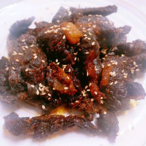 姜片、葱段、香菜(包括根部)、料酒、盐、五香粉、花椒面放牛肉条里面抓拌均匀,放冰箱五小时以上。
