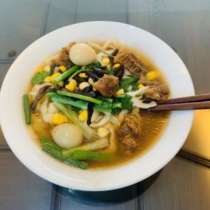 最后添加一勺汤底和几块牛肉加入香菜和葱段即可享用美味可口的红烧牛腩面啦!太好吃啦!赶紧试试吧!