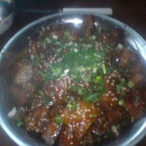 最后加适当盐,最好少加点尝尝在决定,大火收汁加一点鸡精出锅装盘撒上一点芝麻小香葱 完成*^_^*