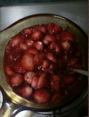 将腌制好的草莓用小火慢慢熬,并不停搅拌