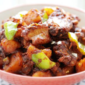 半小时后,土豆都炖烂了,大火收汁,加入青椒块,翻炒,可以撒适量小葱花和蒜末,起锅装盘,卖相也还不错,虽然因为烂熟的缘故,看起来不是那么清爽,但是真的好吃呀!