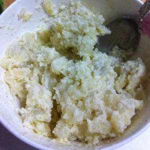 土豆洗净'切成四块'上锅蒸烂'用筷子能扎透不费劲即可。