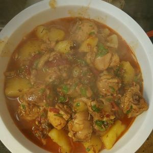 鸡块八分熟时放入土豆块继续煮五分钟后关火待用!