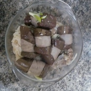 下入血肠,盖上锅盖炖2~3分钟(之前排骨和血肠都是熟的)