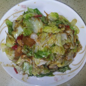 五花肉用刀切小薄片,蒜切碎,辣椒切段。