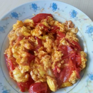 油锅烧热,下入鸡蛋,煎到定型且很嫩的火候盛出。