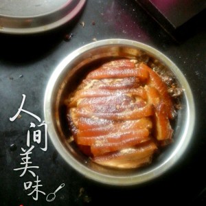 将准备好的五花肉切成小块,均匀放在碗中【碗底均匀洒点盐】