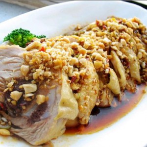 取一碗做汁。加清鸡汤,生抽三勺,花椒油一勺,炒香的麻椒压成粉,香葱,蒜泥,自制红油,搅拌均匀