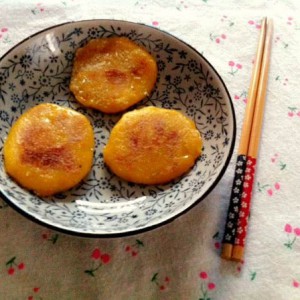 把白砂糖加入蒸熟的南瓜中,搅碎