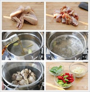 水沸腾时下入鸡块,大火加热至再次沸腾时,打去浮沫,转小火,再煮20分钟关火;