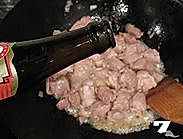 羊肉中多余的水分倒掉,把羊肉放入锅中,大火爆炒。