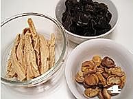 干木耳和腐竹提前泡发,去除杂质,切成小块。板栗去壳备用。