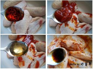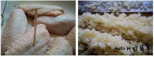将翅中洗净放少许盐,用力挤开鸡翅里的水份,然后用牙签在翅身上扎些洞洞
