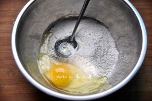 适量面粉,打鸡蛋,我放了一个鸡蛋,加适量清水