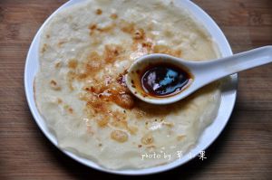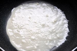 举起锅子晃,让面糊糊均匀的摊满锅底