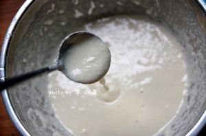 拌匀面糊糊,舀一勺子面糊糊呈现这个状态哈,就OK袅。多做上几次,你自然就可以掌握做煎饼最佳面糊糊滴感觉