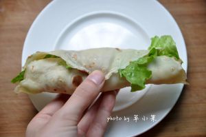 我一共做三张饼皮,第一张因为那啥,一个没忍住,干啃了。于是剩下两张