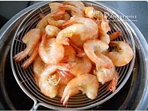 炸至虾壳与虾肉分离即可,捞出沥干油份;