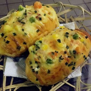 将杂菜与培根混合 加少许色拉酱 少许盐备用