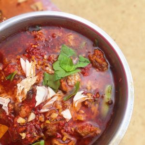 起锅烧油放入豆瓣酱,火锅底料,香辣酱炒香加水,放入味、鸡精,胡椒,水开放入肉片,煮至肉片泛白捞出。倒在碗里。