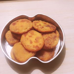 将锅烧热.倒入油.有多一些.覆盖锅底.油热了以后将捏好的南瓜饼放进锅中.2分钟左右就可以捡出了!记得要上下翻面.不然会糊的哦!