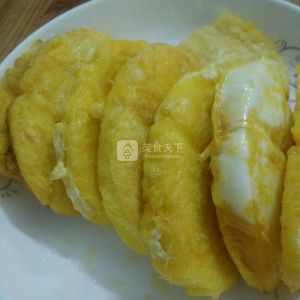 鸡蛋打散,一定要多打一会儿,越碎越好,要不然粘馒头不均匀。