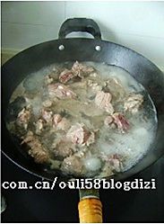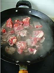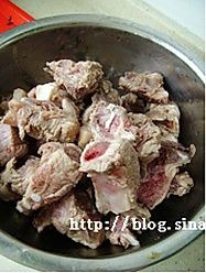 排骨买回来后,锅里烧开水,把排骨放锅里焯,去除表面的脏东西