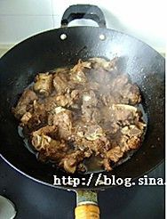 加入两大勺老抽和一大勺冰糖粉,加入适量的盐,翻动排骨