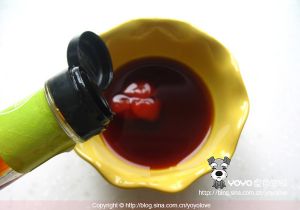 原料:雪莉醋4勺、番茄沙司1勺、胡椒粉半小勺。