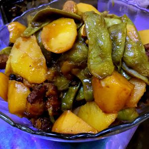 肉小火炖10分钟后加扁豆和马铃薯继续炖煮