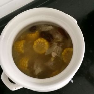 玉米切段入锅,加红枣。10分钟后加料包炖20分钟,捞出料包。加杏鲍菇(它吸油,汤更清爽可口)10分钟后放盐,转现货炖20分钟