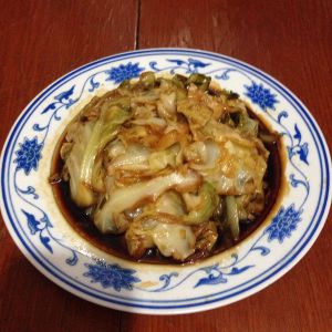 热锅冷油放入葱姜蒜爆香后加入包菜翻炒