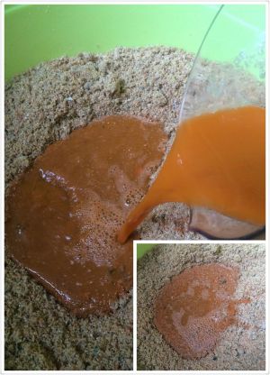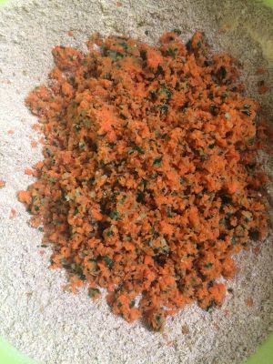 放入胡萝卜,黄瓜泥拌匀。