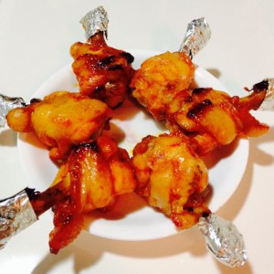 1.翻面、刷料汁、稍整形、再烤十分钟。2.然后再翻面烤五分钟(翅根肉比翅中厚,有耐心),筷子扎透了熟了。