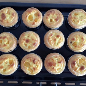 蛋黄,牛奶,淡奶油,糖,搅拌均匀,加入低筋粉过筛,倒八成满买好的蛋挞皮,中层上下火220度15分钟,新手可以仔细观察,各家烤箱脾气不一样哦!