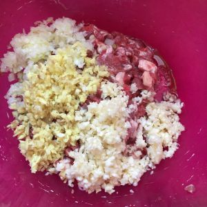 牛肉切0.8cm见方的小丁,葱姜蒜切末,牛肉丁中加红酒、黑胡椒、淀粉、葱姜蒜末,用手抓匀,腌制半小时。