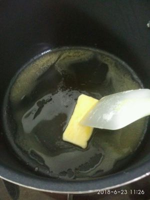 不粘锅里小火溶化黄油