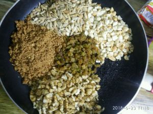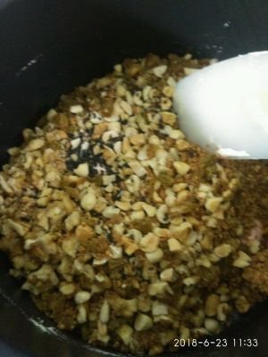 再依次倒入所有坚果和大枣粉黑芝麻,趁热乎赶紧拌匀