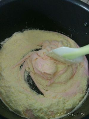 倒入拌了盐的奶粉拌匀,奶粉预留一点备用