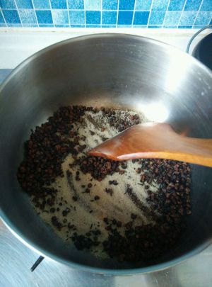 再放入花椒量一半的盐慢慢焙,等盐变微黄色就可以了。
